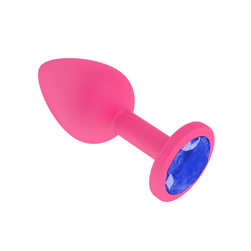 Анальная втулка силиконовая розовая с синим кристаллом маленькая (516-07 BL DD)